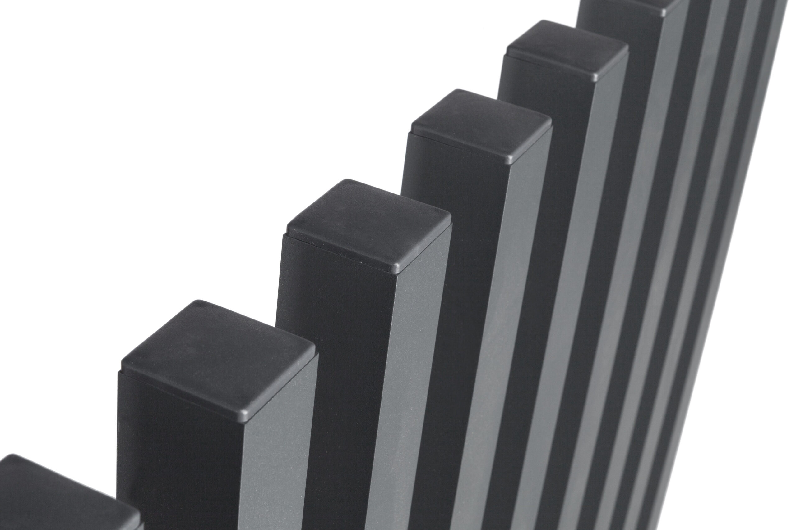 - schlichte Vierkantrohre mit Spitzen-Ornamenten